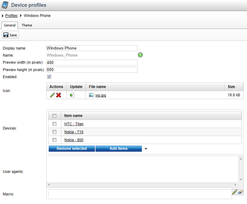 Go to "Site Manager" --> Development --> "Device profiles" and add a "New profile". Fill in the form as shown in the following screenshot: